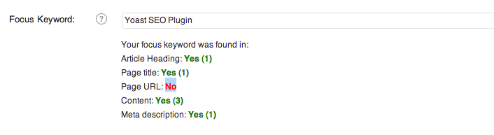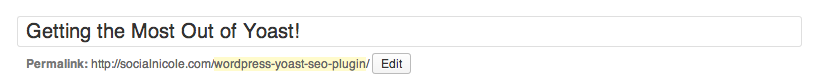 Once you have this all filled out, green and red wording will appear under your Focus Keyword box informing you of where your Focus Keyword appears in your post for SEO purposes. As you can see below, our URL doesn’t include the keyword we chose. It’s simple to edit your URL to include this by going to your post title and clicking “Edit”!