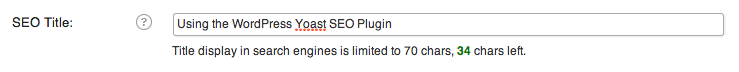 Next, select an SEO title. This may be the same or different from your post title and here’s why: your post title may already have the keyword you’re using it it or it may be a trendy, fun title that wouldn’t get much SEO “juice”. If it’s already keyworded you can copy/past the original title into the SEO Title box. If that’s not the case, creating a separate SEO Title will allow you to keep your “fun” post title but still generate traffic. See below for an example of a normal title vs. an SEO title:
