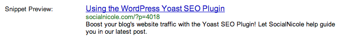 This is what the Snippet Preview looks like and shows you how your post will display in searches: