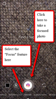 Another fun feature of Instagram stories is the “Focus” feature. Usually used for photos of people, the focus feature will focus on the face being photographed and blur the background, creating a portrait-style effect. Select the “Focus” feature, and take a photo by clicking the circle with the little person icon.
